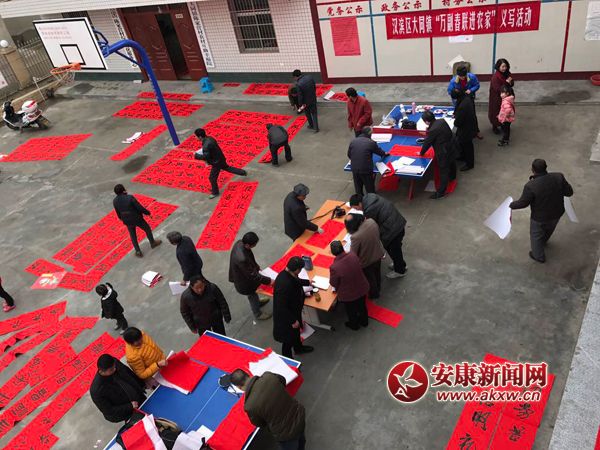 安康新聞網(wǎng)訊(通訊員 劉瀟 楊峰)1月8日,大同鎮(zhèn)陳家營(yíng)村熱鬧非凡。2017年“萬(wàn)副春聯(lián)進(jìn)農(nóng)家”活動(dòng)在這里舉行,在寒冬臘月里為全鎮(zhèn)人民帶來(lái)了濃濃暖意。春聯(lián)書寫臺(tái)前人頭攢動(dòng),前來(lái)免費(fèi)領(lǐng)取春聯(lián)的群眾絡(luò)繹不絕,書法家們揮毫潑墨,現(xiàn)場(chǎng)群眾紛紛拿起手機(jī)拍照留念。一幅幅大紅的春聯(lián),傳遞著新春的吉祥,寄托著對(duì)新年的祝福。