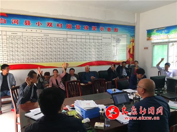 白河冷水小雙村召開貧困戶民主評(píng)議,動(dòng)態(tài)調(diào)整會(huì)議。