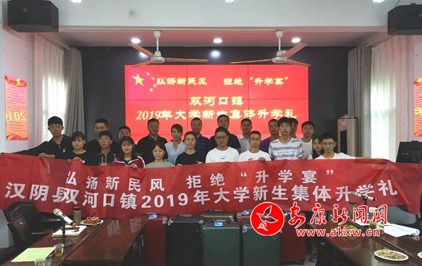 本網(wǎng)訊 (通訊員 黃偉)十年寒窗磨一劍,高考角逐躍龍門(mén)。8月9日,漢陰縣雙河口鎮(zhèn)組織舉辦2019年大學(xué)新生集體升學(xué)禮,進(jìn)一步弘揚(yáng)新民風(fēng),拒絕“升學(xué)宴”,倡導(dǎo)勤儉節(jié)約,知恩感恩的社會(huì)新風(fēng)。