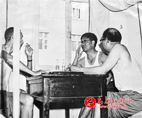 1983年8月中旬,安康日報(bào)社社長張成彬(右,已病逝)與陜西日報(bào)社高級(jí)記者元樹德(中)、張運(yùn)德在互通新聞信息。