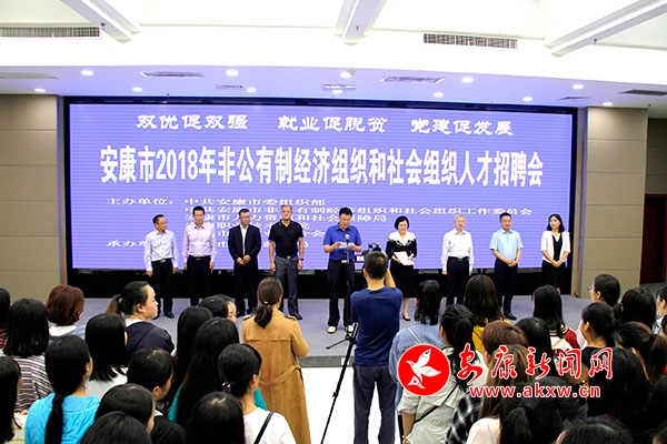 安康新聞網(wǎng)訊  9月15日上午,首屆安康市非公有制經(jīng)濟(jì)組織和社會(huì)組織人才招聘會(huì)在安康高新區(qū)創(chuàng)新創(chuàng)業(yè)中心舉辦,市人大常委會(huì)副主任、市委組織部常務(wù)副部長(zhǎng)鄒俊杰在開幕式上致辭,市政協(xié)副主席、市工商聯(lián)主席孟平主持開幕式,市委組織部、市非公和社會(huì)組織黨工委、市人社局、安康職業(yè)技術(shù)學(xué)院、市工商聯(lián)有關(guān)負(fù)責(zé)同志參加開幕式。gFf安康新聞網(wǎng)