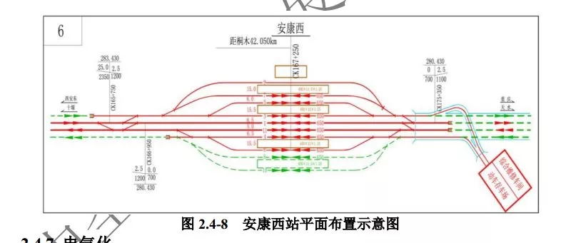 車站初始規(guī)3臺(tái)8線布置,遠(yuǎn)期隨天水一十堰鐵路引入預(yù)留1臺(tái)2線(PS:另一條高鐵過(guò)境安康,美),總規(guī)模4臺(tái)10線。到發(fā)線有效長(zhǎng)650m,設(shè)島式站臺(tái)(450×12×1.25m)4座,設(shè)旅客進(jìn)出站地道2座(寬12m)。