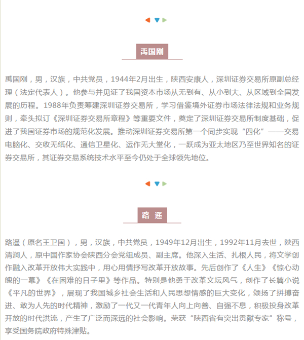 根據(jù)評(píng)選表彰工作部署,在各地區(qū)各部門反復(fù)比選、組織考察、集體研究提出推薦人選的基礎(chǔ)上,經(jīng)歸口評(píng)審、統(tǒng)籌考慮,產(chǎn)生了100名改革開放杰出貢獻(xiàn)擬表彰對(duì)象。其中我省5人入選,安康1人上榜。ewW安康新聞網(wǎng)
