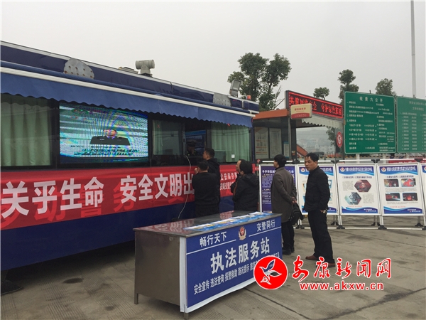 上午9時,在十天高速安康西執(zhí)勤點,安康市公安局交警支隊副支隊長吳旬安、安康高交大隊副大隊長彭龍靜帶領(lǐng)民警開展交通安全宣傳活動和嚴查交通違法大曝光活動。