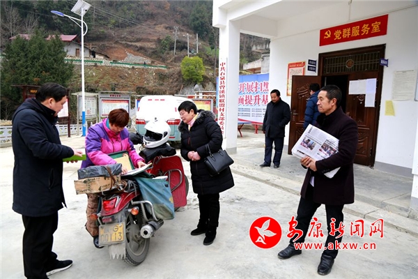 下午3點(diǎn)多走到聯(lián)盟村,趙明翠剛把報(bào)紙送到村上。村醫(yī)葉平菊就熱情地拉著趙明翠的手說(shuō):“山里好多群眾都搬到集中安置點(diǎn)安居了!村衛(wèi)生室都專門聘請(qǐng)的有醫(yī)生了!農(nóng)村婦女都能免費(fèi)體檢、免費(fèi)領(lǐng)取相關(guān)婦科藥品了!”趙明翠說(shuō):“這要感謝黨和國(guó)家的好政策!”