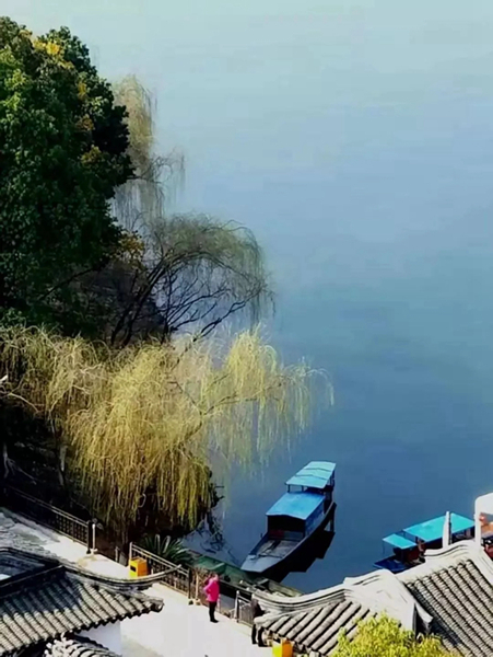 這是瀛湖和春天的約定。在玉興島,在金螺島,在翠屏島,在每一處不知名的水域,在每一戶綠楊煙柳掩映的人家,春天帶著原始的氣息撲面而來。那些人文元素,與春光春水悄然應(yīng)答,在每一塊青石板上,在每一座露臺(tái)里。變化中的瀛湖,湯池里都是春天的光線,靜靜映照著瀛湖一年的奔跑和余韻。