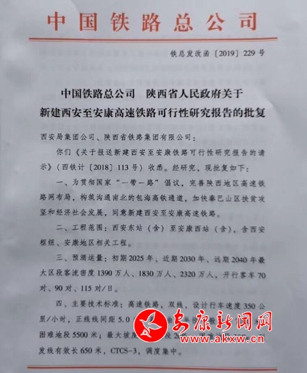 本網訊 (通訊員 安政軒)4月26日,新建西安至安康高速鐵路可行性研究報告獲得中國鐵路總公司、陜西省人民政府正式批復,標志著西康高鐵即將啟動實質性建設。