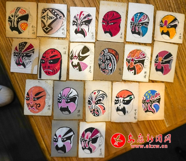 兩位演員分別勾畫了京劇臉譜和漢劇臉譜,京劇臉譜大都左右兩邊對稱,有一種對稱美,而漢劇臉譜則不拘泥于此,更加的獨特有個性,顏色也較為大膽奔放。