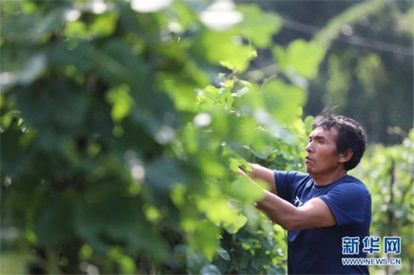 一名村民在饒峰鎮(zhèn)三岔河村的葛根種植園區(qū)內勞作(9月6日攝)。