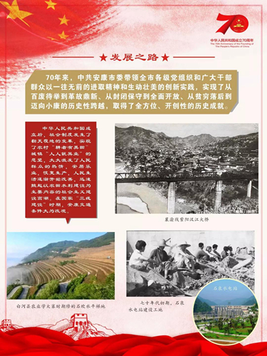 滿懷豪情圖說盛世,光影定格美好記憶。成就展分為崢嶸歲月、安康巨變、黨旗飄飄3個部分,以豐富的資料、精美的圖片、詳實的數(shù)據(jù),從不同時期、不同角度記錄了全市人民在中省領(lǐng)導的關(guān)懷下,不甘落后、求實創(chuàng)新的足跡,展示了70年來,特別是黨的十八大以來,在習近平新時代中國特色社會主義思想指引下,統(tǒng)籌推進“五位一體”總體布局,協(xié)調(diào)推進“四個全面”戰(zhàn)略布局,全市經(jīng)濟建設(shè)、政治建設(shè)、文化建設(shè)、社會建設(shè)、生態(tài)文明建設(shè)和黨的建設(shè)取得的顯著成就。