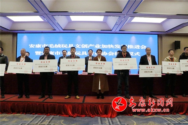會(huì)上,趙俊民與于福亮共同為安康市毛絨玩具行業(yè)協(xié)會(huì)揭牌,協(xié)會(huì)新當(dāng)選會(huì)長(zhǎng)沈愛華作表態(tài)發(fā)言。會(huì)議還向30余家企業(yè)兌現(xiàn)了毛絨玩具文創(chuàng)產(chǎn)業(yè)發(fā)展基金獎(jiǎng)勵(lì)。