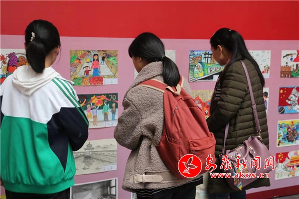頒獎儀式上,與會領(lǐng)導(dǎo)嘉賓為獲獎個人及單位代表頒獎;教師、學(xué)生代表共同啟動安康市“我和我的祖國”2019年青少年書畫大賽獲獎作品巡展。在隨后舉行的青少年書畫大賽作品展中,美術(shù)家、書法家協(xié)會等專業(yè)人員對參賽作品進(jìn)行觀摩指點(diǎn);獲獎代表及中小學(xué)生書法繪畫愛好者在現(xiàn)場觀摩書畫大賽作品。