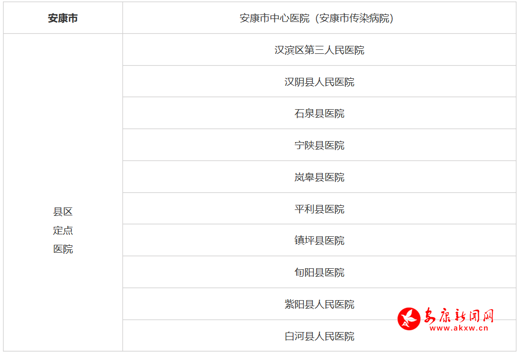 附:安康市新型冠狀病毒感染的肺炎定點醫(yī)院名單