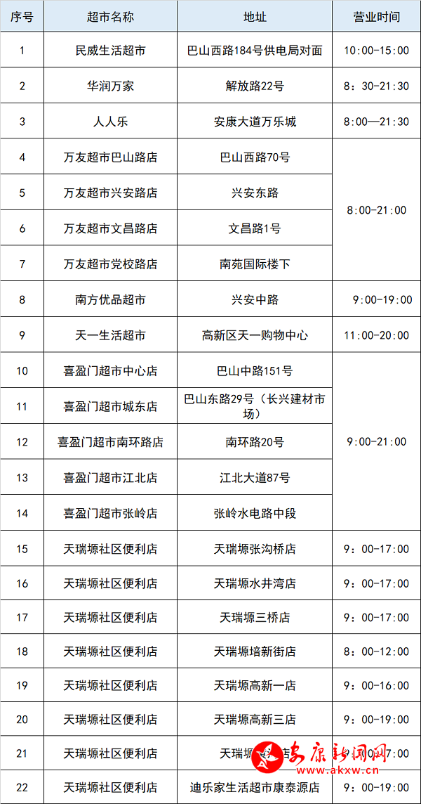 附:各超市營業(yè)時(shí)間及地址