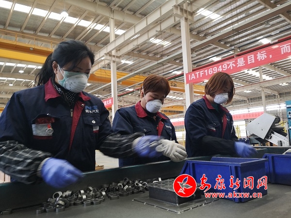 測量體溫、全身消毒,戴上口罩等程序后,工人們陸續(xù)進入廠區(qū),這是今天早上7點50分,陜西南水汽車配件制造有限公司內(nèi)的場景。在裝配車間,生產(chǎn)線上佩戴好口罩的工人們,在各條流水線上的員工正如火如荼地進行各項操作。該公司主要負責人告訴記者,為了做好企業(yè)復(fù)工復(fù)產(chǎn)后員工的生命安全和身體健康保障,公司每天對公共場所和生產(chǎn)區(qū)用消毒液進行多次消毒,詳細排查所有員工出行、接觸人員情況,并為員工免費提供口罩,每次上崗前進行檢測。