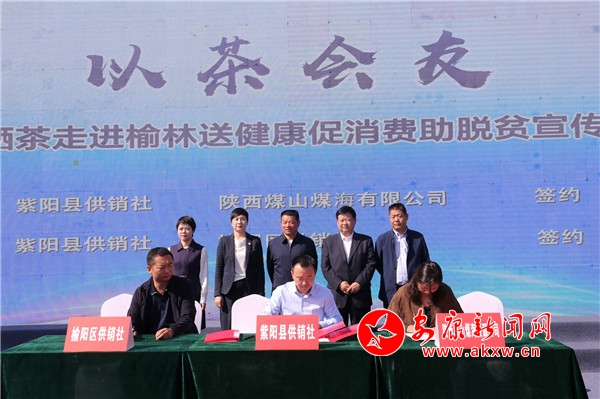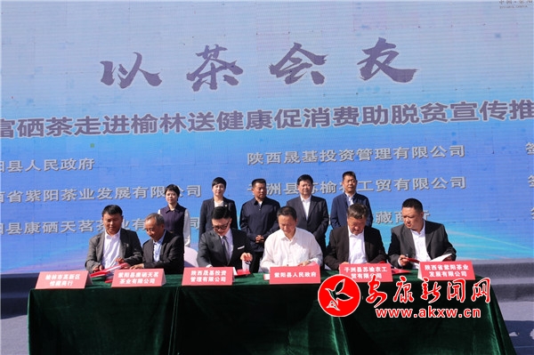 活動(dòng)儀式上,國家一級茶葉審評技師、陜西省茶人聯(lián)誼會會長韓星海對安康紫陽富硒茶作專業(yè)點(diǎn)評,紫陽縣有關(guān)部門負(fù)責(zé)人作紫陽招商推介、紫陽富硒茶推介、紫陽旅游推介;顒(dòng)進(jìn)行了簽約、紫陽富硒茶專家點(diǎn)評和“紫陽富硒特產(chǎn)營銷中心”授牌儀式。紫陽縣人民政府與陜西晟基投資管理有限公司簽訂富硒礦泉水綜合開發(fā)項(xiàng)目;陜西省紫陽茶業(yè)發(fā)展有限公司與子洲縣蘇榆農(nóng)工貿(mào)有限公司簽訂“紫陽富硒茶、子州”養(yǎng)生茶項(xiàng)目合作開發(fā)協(xié)議;紫陽縣康硒天茗茶業(yè)有限公司與榆林市高新區(qū)惟藏商行簽訂紫陽富硒茶購銷協(xié)議;紫陽縣供銷聯(lián)社與陜西煤山煤海有限公司簽訂共建“榆林市紫陽富硒特產(chǎn)營銷中心”協(xié)議,紫陽縣供銷聯(lián)社與榆陽區(qū)供銷聯(lián)社簽訂“地方特產(chǎn)供銷互促合作協(xié)議”。