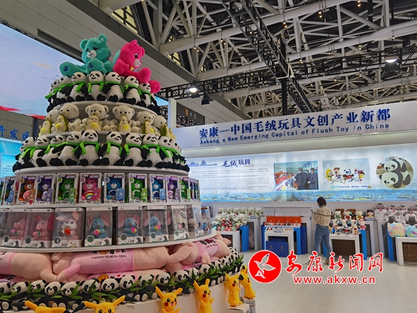 今年五月,第五屆絲綢之路國際博覽會暨中國東西部合作與投資貿(mào)易洽談會在西安舉行。走進安康展館,毛絨玩具搭建的小山格外顯眼,十四運吉祥物“秦嶺四寶”占據(jù)C位,展廳四周也用毛絨玩具娃娃進行點綴。前來拍照、采購、咨詢的市民絡(luò)繹不絕。不少企業(yè)現(xiàn)場接到訂單。