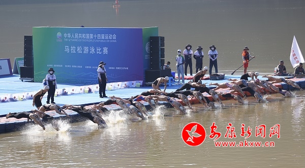 本網(wǎng)訊(記者 魏濤 陸青波 )9月12日9時,隨著“嘀”的一聲哨響,十四運會女子10公里馬拉松游泳項目在安康瀛湖正式開賽,來自全國21個代表隊的34名女運動健兒紛紛躍入水中,平靜的湖面瞬間浪花飛起。她們似蛟龍如飛魚,你追我趕,奮勇爭先。i89安康新聞網(wǎng)