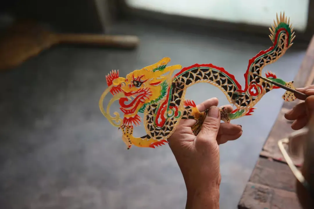 “雕刻一張皮影,從選皮制皮、描稿走刀到染色組裝,要經(jīng)過二十多道制作工序,最快也得3天時(shí)間。冬天天氣冷時(shí),一件影人做成需要1個月的時(shí)間。”說完,唐章根從一個老木箱子里拿出一張皮影,各類道情劇目所用到的人物、動物、布景,形形色色、林林總總都印在他腦子里。