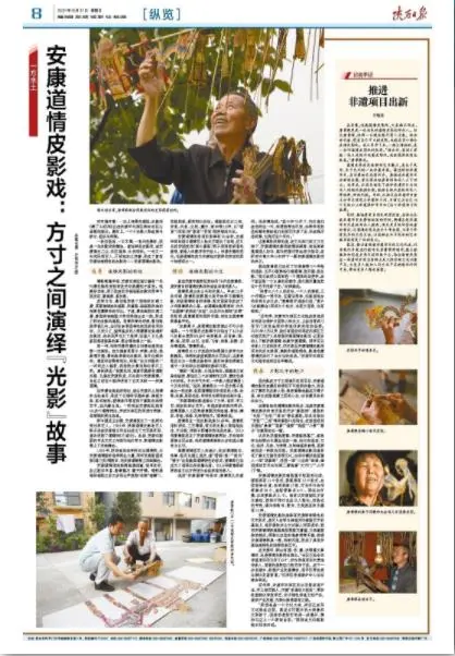 10月31日,《陜西日報(bào)》8版“縱覽”欄目就“安康道情皮影”非遺保護(hù)項(xiàng)目進(jìn)行了專題報(bào)道,對“安康道情皮影”這一優(yōu)秀地方非物質(zhì)文化遺產(chǎn)項(xiàng)目及漢濱區(qū)在非遺項(xiàng)目保護(hù)、傳承方面工作具體做法進(jìn)行了介紹,受到了社會各界的廣泛關(guān)注。今天,我們對報(bào)道進(jìn)行轉(zhuǎn)發(fā),希望更多的朋友關(guān)注、守護(hù)我們寶貴的地方非物質(zhì)文化遺產(chǎn),傳承延續(xù)地方文脈和人文精神。