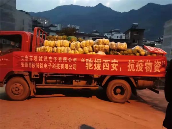 1月1日上午,11輛總價(jià)值121.8萬(wàn)元抗疫物資專車從漢濱駛出,中午時(shí)分到達(dá)西安雁塔區(qū)和航天基地。這批滿載著廣大民營(yíng)企業(yè)愛心的蔬菜、豬肉、米面油、礦泉水、牛肉醬及漢濱特產(chǎn)將在當(dāng)?shù)亟y(tǒng)一調(diào)配下進(jìn)入各大社區(qū),用于保障社區(qū)居民的日常生活及安全防護(hù)。