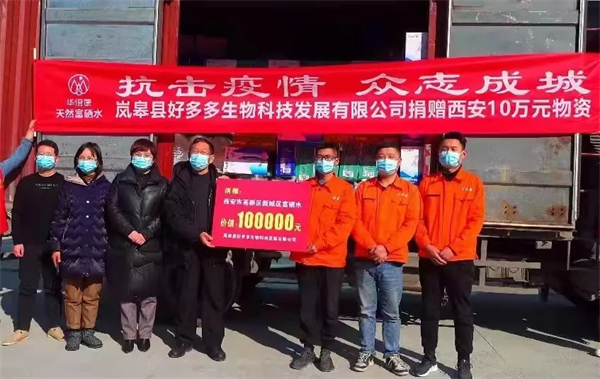 嵐皋縣好多多生物科技發(fā)展有限公司捐贈(zèng)總價(jià)值10萬(wàn)元的飲用水