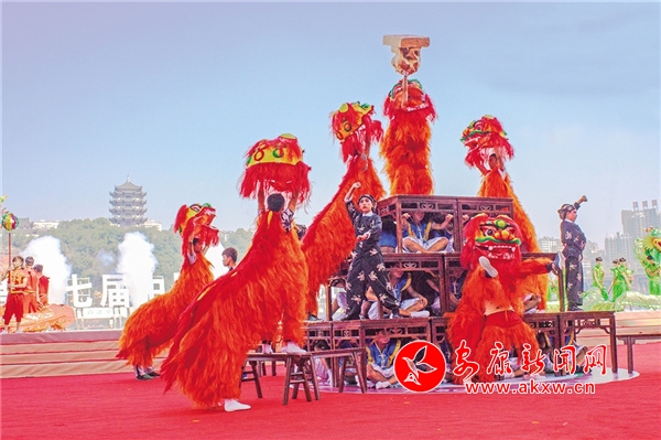 2006年,第七屆安康龍舟節(jié)上精彩的民間社火“翻天印”。張炳實(shí) 攝