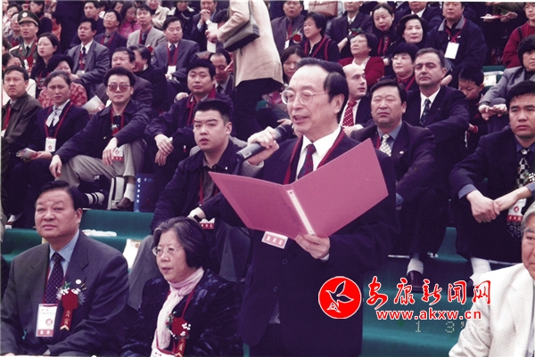 2002年,第三屆安康龍舟節(jié)上,時(shí)任全國(guó)人大常委會(huì)副委員長(zhǎng)蔣正華宣布龍舟節(jié)開(kāi)幕。 肖利英 攝