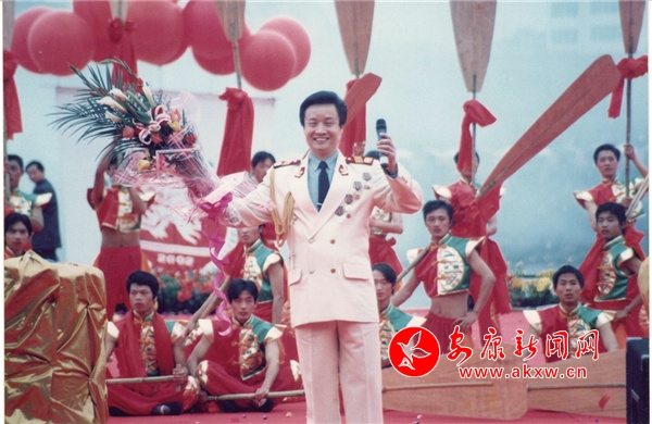 2002年5月2日,著名軍旅歌手閻維文在第三屆安康龍舟節(jié)開(kāi)幕式上演唱。 趙方 攝
