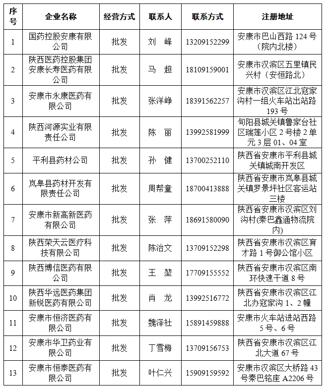 全市疫情防控用藥械物資生產(chǎn)企業(yè)名單