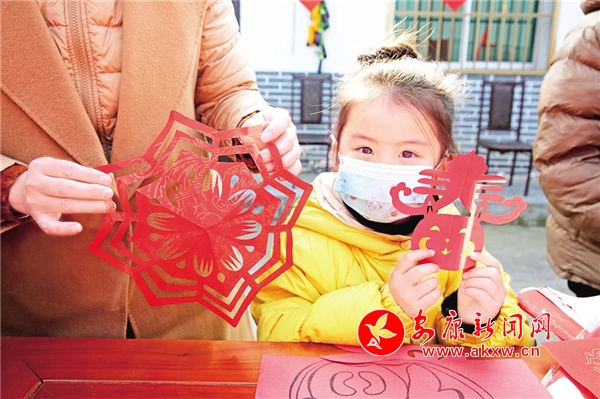 7、春節(jié)期間,漢濱區(qū)非遺剪紙深受廣大群眾喜愛。圖為剪紙非遺傳承人在建民街道徐家溝社區(qū)現(xiàn)場教授剪紙,初學(xué)的小朋友向大家展示作品。