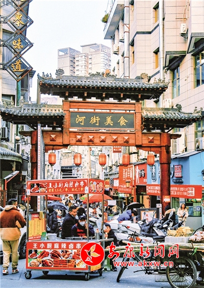 8、春節(jié)期間,嵐皋河街美食街熱鬧非凡。