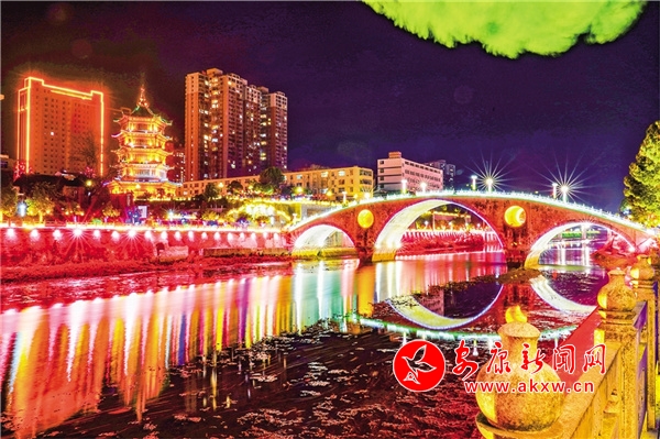 12、春節(jié)期間,安康城區(qū)主要標(biāo)志性建筑和橋梁霓虹燈五彩斑斕、美不勝收。