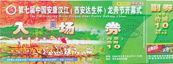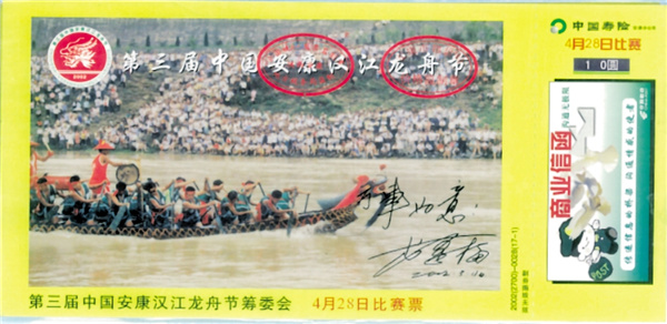 中國安康漢江龍舟節(jié),已成功舉辦二十二屆,除第一屆未發(fā)行門票以外,這組從2001年第二屆至2022年第二十二屆龍舟節(jié)的門票全輯(除第十四屆外),勾勒出了一條江的命運軌跡,彰顯了安康在中國社會經(jīng)濟整體布局中的責任和擔當。