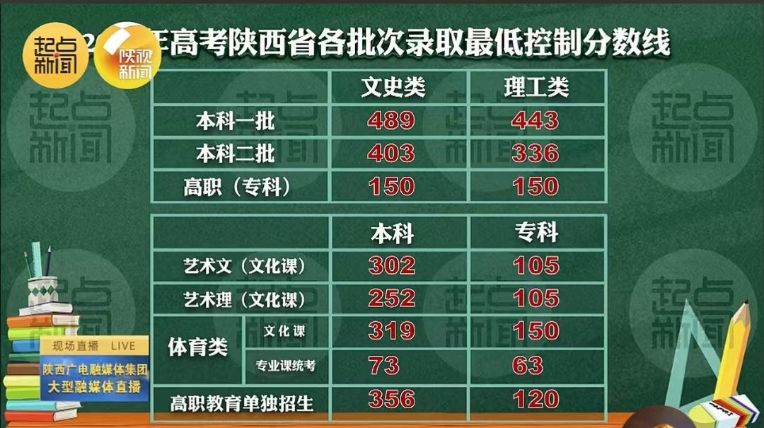 本網(wǎng)訊 6月24日,據(jù)2023年陜西省高考各批次錄取分數(shù)線新聞發(fā)布會公布,陜西的文史類分數(shù)線,本科一批489分、二批403分、?疲ǜ呗殻┡150分;理工類分數(shù)線本科第一批為443分、第二批336分、專科(高職)批150分。