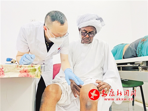 “我們的義診地點雖然設在當?shù)蒯t(yī)院,但其診室布置也只有2張檢查床、3張桌子、數(shù)把椅子。條件雖然簡陋,但當天還是針灸治療了200余名患者。”李傳根說,一位老年患者針灸治療腰部之后,可能是覺得疼痛緩解非常明顯,又要求為她治療膝關(guān)節(jié)肩關(guān)節(jié)疼痛。這也是李傳根在日常工作中經(jīng)常碰到的情況,很多蘇丹老百姓全身多個部位都有疾病,有了治療機會,便會治好一處病痛還希望治療另外一處。他們這樣做,主要出于對醫(yī)療費用的考量和對中國醫(yī)療隊的信任、對中醫(yī)的認可。