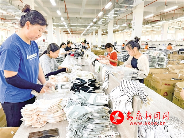 位于漢濱區(qū)五里工業(yè)園區(qū)的安康新樂(lè)祥紡織工貿(mào)有限公司包裝車間。 記者 羅偉 攝