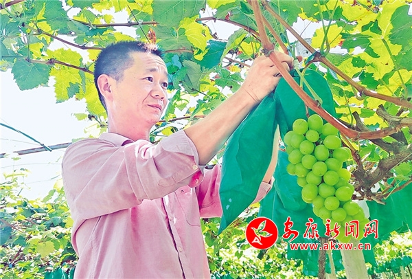 葡萄園負責人石洪寶認真地察看果子的長勢,眼里滿是豐收的喜悅。“今年葡萄雖然在掛果期受到雨水影響,但是整體長勢還不錯,再過幾天就可以開園采摘了。”拆開一個套袋,晶瑩如玉的陽光玫瑰葡萄顆顆飽滿渾圓,濃郁的果香瞬間涌入鼻腔。石洪寶笑著說:“這可是精心挑選出來的好產(chǎn)業(yè),現(xiàn)在全村以陽光玫瑰葡萄種植為主,共發(fā)展100畝左右,產(chǎn)業(yè)效益很不錯,葡萄已經(jīng)成為帶動村民穩(wěn)定增收的‘致富果’。”