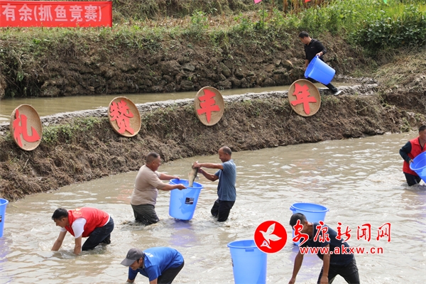 此次歡慶豐收節(jié)活動既有文藝表演,又有拔河比賽、擔(dān)糧競賽、抓魚競賽,還有極具地方特色的農(nóng)家蒲籃宴。不僅如此,活動現(xiàn)場還設(shè)置了網(wǎng)紅直播帶貨區(qū)、特色農(nóng)產(chǎn)品展銷區(qū),“果蜜紅”茶、富硒綠茶、有機(jī)大米、獼猴桃、菜籽油等農(nóng)特產(chǎn)品琳瑯滿目,讓參與活動的群眾和游客盡情感受豐收的喜悅。