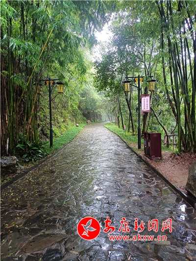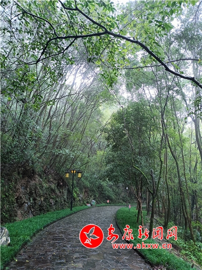 福道被雨水清洗得纖塵不染,旁邊,筆直粗壯的松柏、楓柳從谷底拔地而起,直插云霄。七里香、救命糧的藤蔓盤(pán)來(lái)繞去,織得密不透風(fēng),像天然的綠色屏障。青綠的葉子經(jīng)過(guò)雨水的沖洗,像一枚枚翡翠,綠得耀眼。那些晶亮亮的雨珠在葉子上肆意地滾動(dòng)著,有的調(diào)皮地掛在葉尖上,風(fēng)輕輕一吹,“啪”地掉落下來(lái),摔碎了一段疼痛的記憶。因?yàn)樘,又是雨天,路上幾乎沒(méi)有行人,一向早起的鳥(niǎo)兒也趁機(jī)偷懶,躲在巢里睡大覺(jué),少了它們曼妙的歌聲。天地間,只有細(xì)雨與林木親昵時(shí)發(fā)出的窸窸窣窣的各種細(xì)碎聲響。