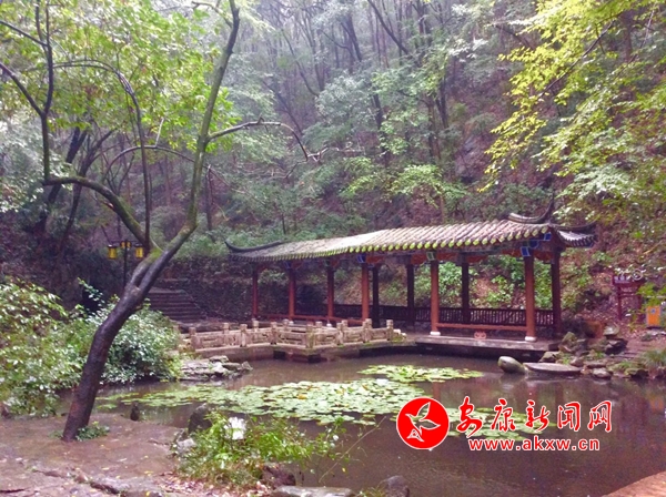 我沿著階梯,踏進(jìn)二天門旁邊的亭子里,倚在柱子上,聽(tīng)一場(chǎng)秋雨:亭子下的秋霧濃一陣子,淡一陣子。濃時(shí),漫過(guò)亭子,我也在云里,駕著亭子,云里飛度;淡時(shí),露出路下樹(shù)尖,淺黃的葉子掛滿珍珠,一粒一粒的雨珠,從亭子的飛檐上落下,打在藤蔓上,敲打出“叮叮咚咚”的聲音,遠(yuǎn)處的細(xì)雨落在秋葉上,落出“沙沙沙”的聲音,林子里秋鳥(niǎo)的叫聲,和弦在一起,成為秋歌,這美妙的秋歌,在秋霧里蕩漾、蔓延、飄落。我靜靜地聆聽(tīng),我悠哉悠哉地享受,享受這淺秋賜給大地的音樂(lè),聽(tīng)著聽(tīng)著,路邊柱子上的喇叭里舒伯特的《小夜曲》漫過(guò)來(lái),我閉上眼睛,夜就漫過(guò)來(lái),這美麗的《小夜曲》蕩滌著我的靈魂,柔軟的《小夜曲》讓我的淚水溢了出來(lái),這時(shí)候《美麗的磨坊少女》走出來(lái),淡淡的憂傷也流了出來(lái)。我拍拍腦門,醒了過(guò)來(lái),此時(shí),懸掛在路燈上的音箱里,又飛來(lái)劉德華的《秋意中等我》的歌聲,在秋雨里扭來(lái)扭去。