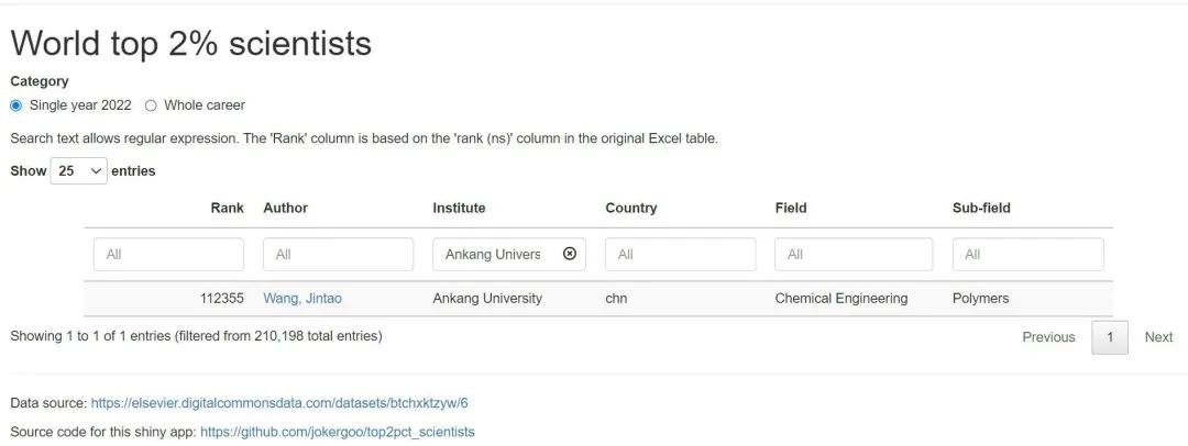 近日,美國斯坦福大學(xué)與Elsevier聯(lián)合發(fā)布2023年度“全球前2%頂尖科學(xué)家榜單”(包括終身科學(xué)影響力排行榜和2022年度科學(xué)影響力排行榜)。安康學(xué)院科創(chuàng)驛站駐站博士王錦濤教授入選了“2022年度科學(xué)影響力排行榜”。