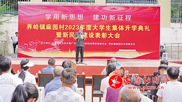 界嶺鎮(zhèn)麻園村2023年度集中升學(xué)禮暨新民風(fēng)建設(shè)表彰活動現(xiàn)場——圖為學(xué)生家長公開承諾不辦“無事酒” 陳楚庚 攝