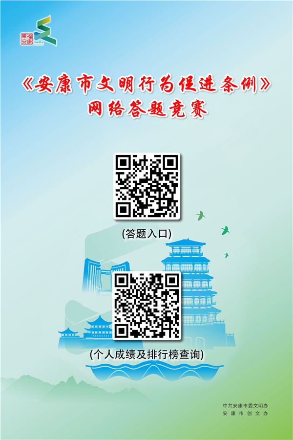 據(jù)了解,市委文明辦、市創(chuàng)文辦已經(jīng)在全市下發(fā)《關(guān)于學(xué)習(xí)宣傳貫徹〈安康市文明行為促進(jìn)條例〉的通知》和《關(guān)于開展〈安康市文明行為促進(jìn)條例〉網(wǎng)絡(luò)答題競賽活動的通知》,本次活動旨在通過網(wǎng)絡(luò)答題的形式,深入學(xué)習(xí)宣傳貫徹《安康市文明行為促進(jìn)條例》,提高廣大干部職工和市民群眾的文明素養(yǎng)。