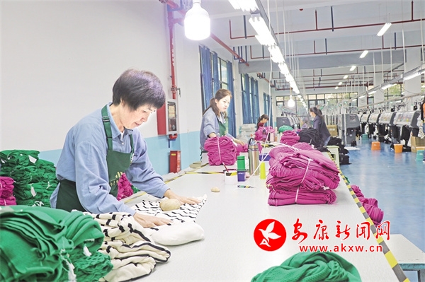 “我在這里做查片、補(bǔ)片。工作了大半年了,工資7000元左右。廠里每天還管三餐。”在家門口拿到比較滿意的工資,這是杜金瓊以前難以想象的好事。她曾在廣東務(wù)工近二十年,稱得上是紡織服裝行業(yè)資深從業(yè)者。得知西北紡織服裝產(chǎn)業(yè)城一期部分企業(yè)投產(chǎn)有大量用工需求,半年前,杜金瓊返鄉(xiāng)工作,并迅速成為廠里的技術(shù)骨干。“技術(shù)含量肯定是有的,但說難也不難,只要肯用心,練習(xí)實(shí)踐半年就能上手。”杜金瓊說。