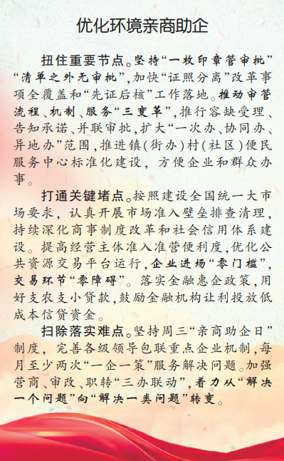 強(qiáng)化縣城載體作用。分類(lèi)差異發(fā)展。落實(shí)全省縣域發(fā)展三類(lèi)功能區(qū)劃分,產(chǎn)業(yè)功能縣以發(fā)展特色產(chǎn)業(yè)優(yōu)先,聚力培育支柱產(chǎn)業(yè),推動(dòng)首位產(chǎn)業(yè)產(chǎn)值向百億元大關(guān)邁進(jìn);農(nóng)產(chǎn)品主產(chǎn)縣以發(fā)展農(nóng)業(yè)優(yōu)先,保障糧食安全,發(fā)展特色農(nóng)產(chǎn)品,做優(yōu)做強(qiáng)精深加工;生態(tài)功能縣以保護(hù)生態(tài)優(yōu)先,探索經(jīng)濟(jì)生態(tài)化和生態(tài)經(jīng)濟(jì)化有效路徑。完善基礎(chǔ)設(shè)施。創(chuàng)建“四好農(nóng)村路”示范市。推進(jìn)安康水網(wǎng)建設(shè),抓實(shí)電網(wǎng)鞏固提升工程。突出縣域承載。以發(fā)展縣域首位產(chǎn)業(yè)為戰(zhàn)略重點(diǎn),圍繞“產(chǎn)城人”融合做強(qiáng)縣域經(jīng)濟(jì)。培育鄉(xiāng)鎮(zhèn)集群。推動(dòng)縣城基礎(chǔ)設(shè)施向鄉(xiāng)鎮(zhèn)延伸,強(qiáng)化集鎮(zhèn)綜合服務(wù)功能。