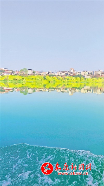 春分之際,漢江游船畫舫從西城坊出發(fā),途徑關(guān)廟、早陽等鎮(zhèn),直抵本次航行的終點站——石梯鎮(zhèn)。將近一個小時的航程中,兩岸美景盡收眼底,金黃燦爛的油菜花鋪陳在起伏的丘陵原野上,江岸楊柳依依、桃花盛開,民居與自然美景融為一體,倒映在碧綠的江面上,直教人看一眼便覺心曠神怡。