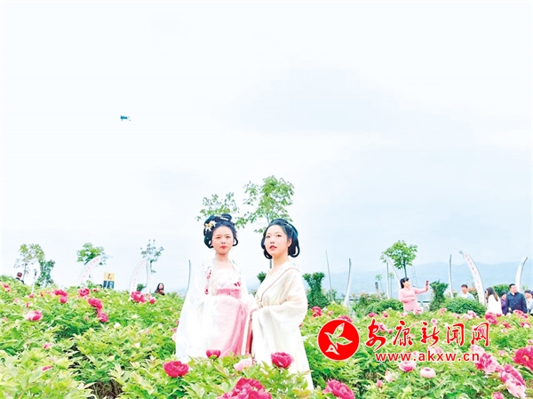 “我在抖音平臺上看到花遇灣這個地方挺美的,我就帶著姐妹們穿得漂漂亮亮的,都來看這個牡丹花,花開得艷麗,周邊也是山清水秀、風景宜人,我們玩得特別開心……”園外車輛如潮,園內人流不斷,游客們有的全家出動、有的結伴而行,漫步在牡丹花海之中,盡情享受賞花帶來的樂趣。