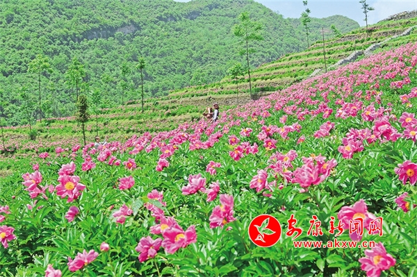 每年五月,白河縣安福村的千畝芍藥、牡丹競(jìng)相綻放,爭(zhēng)奇斗艷,既是當(dāng)?shù)厝罕娭赂辉鍪盏漠a(chǎn)業(yè)項(xiàng)目,又是吸引游客的一大亮點(diǎn)。