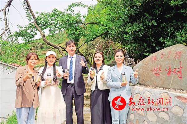 漢濱區(qū)區(qū)長(zhǎng)吳大林(中)攜網(wǎng)絡(luò)達(dá)人為“陜茶一號(hào)”代言tjK安康新聞網(wǎng)